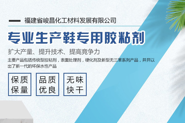 福建省峻昌化工材料發(fā)展有限公司總部設(shè)在中國(guó)鞋鄉(xiāng)——晉江。為更好、更方便服務(wù)廣大客戶,我司在廣東江門及福建均設(shè)有先進(jìn)的PU膠生產(chǎn)基地,歡迎廣大同行前來(lái)我司灌裝或批發(fā)銷售。公司是一家中外合資,面向亞太地區(qū)從事研究,生產(chǎn)銷售鞋用粘膠10多年的專業(yè)公司。從國(guó)外引進(jìn)生產(chǎn)能力為數(shù)萬(wàn)噸的全套先進(jìn)生產(chǎn),檢驗(yàn)設(shè)備,與德國(guó)Bayer,日本DENKA及美國(guó),西班牙等其它海外公司有著密切的原材料及技術(shù)合作。公司主要產(chǎn)品包括傳統(tǒng)型膠粘劑,表面處理劑,硬化劑及新型無(wú)三苯系列產(chǎn)品,并開以出了新一代的環(huán)保水性產(chǎn)品。供應(yīng)國(guó)內(nèi)外鞋業(yè),手提箱包及建筑工程單位使用。公司始終保持產(chǎn)品的良好品質(zhì)及專業(yè)特性,并倍受廣大客戶好評(píng)。
